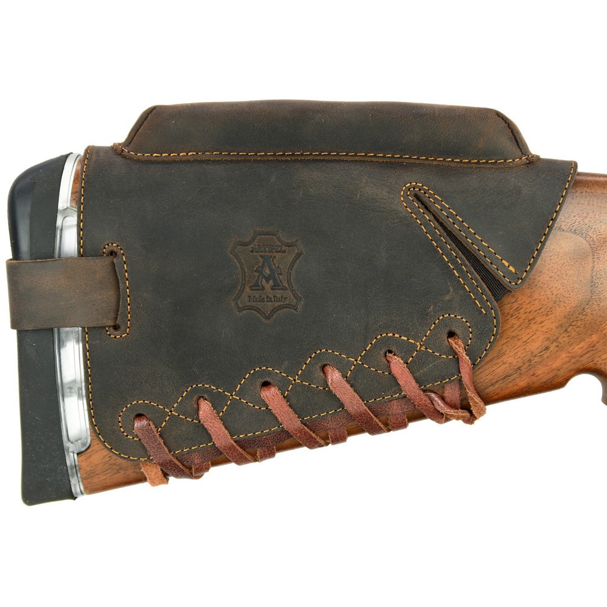 Allineatore ottico in pelle cerata idrorepellente e foderato in pelle scamosciata per calcio con punto rosso / red-dot montato.