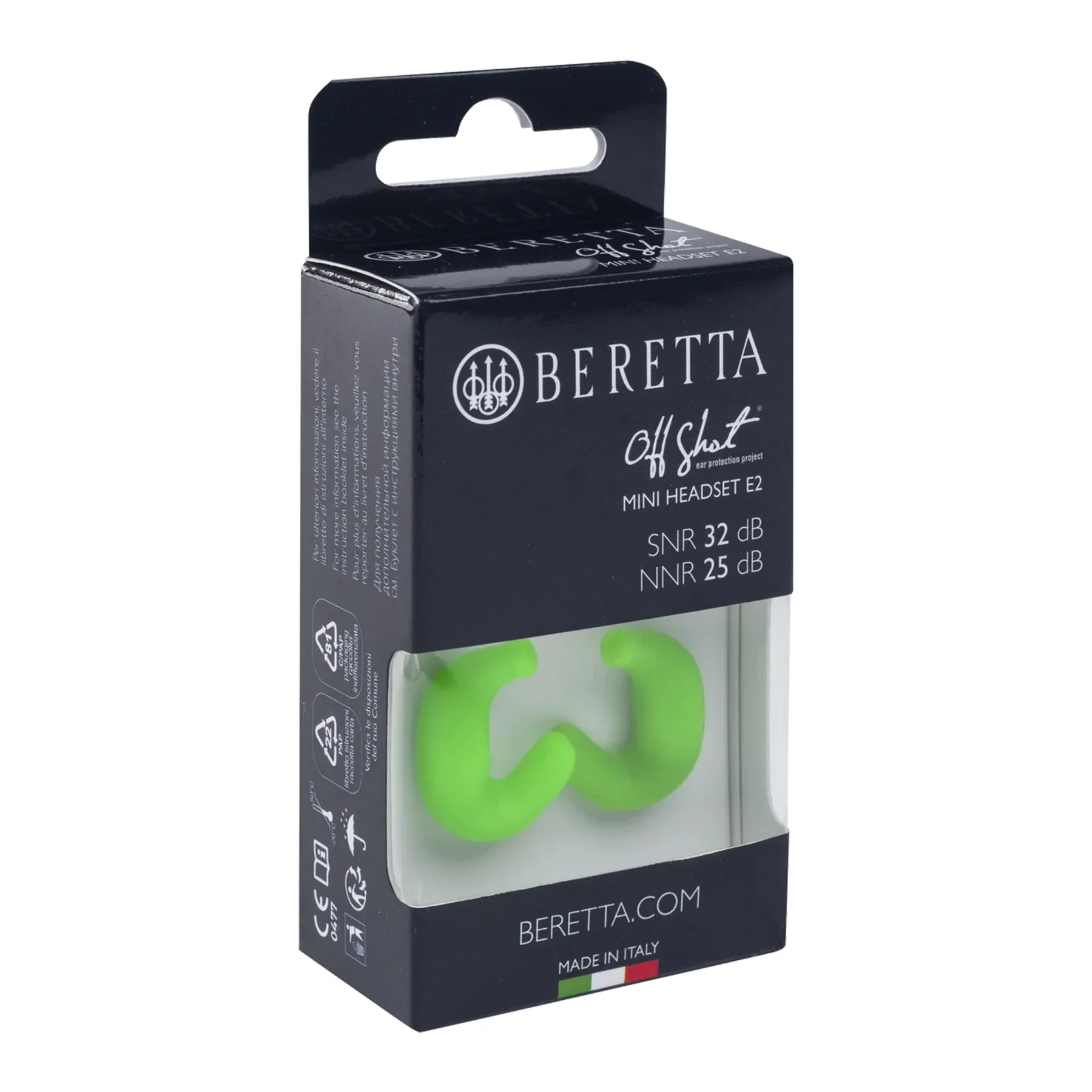 BERETTA Mini HeadSet Comfort Plus AURICOLARE Protezione 32db SNR Verde Fluo