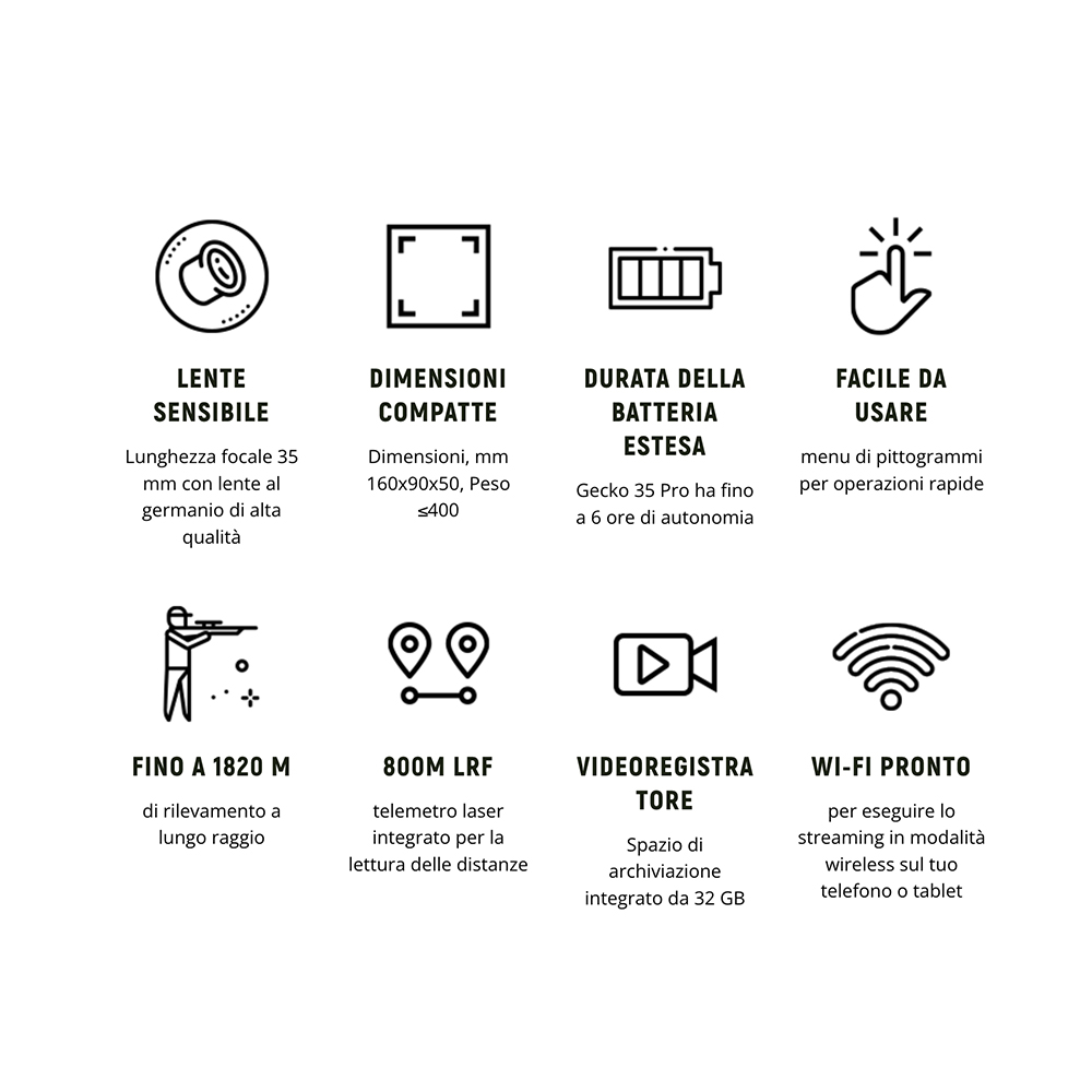 Gecko 35 Pro con un LRF migliorerà le tue capacità di cacciatore e migliorerà anche la tua visione nella tua prossima avventura all’aperto. Gecko 35 Pro è tutto ciò che i cacciatori moderni e gli utenti professionisti all’aperto si aspettano.