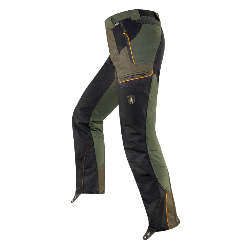 PANTHER PRO 4.0 è un pantalone con tecnologia THORN SHIELD®: sviluppata da TRABALDO®, è una speciale struttura tessile in grado di migliorare sensibilmente la resistenza alla perforazione, riducendo fastidiosi danni all’epidermide causati dall’utilizzo in ambienti spinosi. Per conferire vestibilità sinuose e confort di calzata, nella quarta generazione abbiamo utilizzato la nuova culatta in KETRTEX bi-stretch, che in unione alla confort-zone lombare non vi farà sembrare possibile di stare indossando un pantalone così rinforzato.