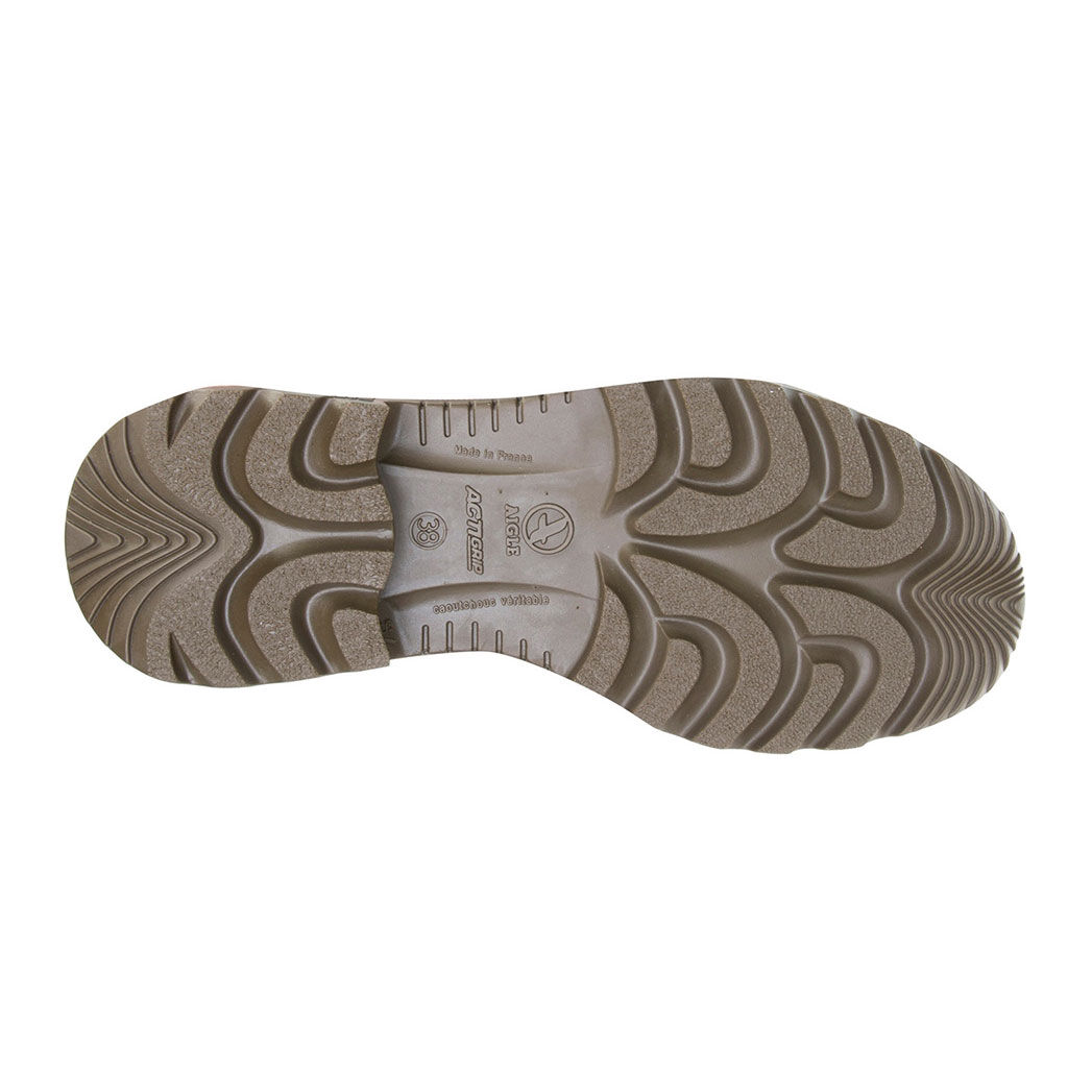 Il PARCOURS 2 AIGLE con suola in gomma a tre densità è forse lo stivale Parcours® che offre il miglior comfort e che permette di camminare più a lungo senza stancarsi. Il cuscinetto ammortizzante realizzato all’interno del tallone assorbe il peso e restituisce parte dell’energia del passo. Grazie alla forma aderente alla caviglia, tipica della vestibilità degli stivali Aigle trattiene saldamente il piede contribuendo al confort, un po’ come farebbe una scarpa da ginnastica. La soletta interna è in schiuma assorbente su una base di gomma rivestita di Softex®, metre il rivestimento interno dello stivale è realizzato in poliestere, che assciuga rapidamente e permette di usare lo stivale come una calzatura di tutti i giorni. Il PARCOURS è realizzato in gomma a mano in Francia. TOMAIA: prevalenza di gomma naturale Gomma Plus® (comfort, resistenza, morbidezza) FODERA: poliestere (asciugatura rapida) SOLETTA interna: schiuma assorbente su base in gomma, rivestita di Softex® (asciugatura rapida) Suola: ammortizzante, in gomma a 3 densità (ammortizzazione, stabilità e resistenza all’abrasione).
