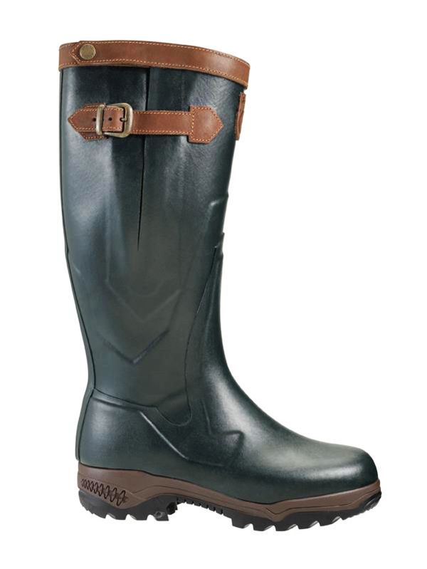 Parcours® Trophée è uno stivale anti-fatica dotato di rinforzo nella zona dell’avampiede. È lo stivale perfetto per spostarsi tra rovi e rami. Realizzato in tessuto schermato, un poliestere a elevata resistenza, questo rinforzo è situato sul collo del piede ed è stato testato secondo la norma NF EN 13567+A1* per garantire la massima protezione. La fodera a livello del piede e la soletta sono in pelle pieno fiore per offrire il massimo comfort. La pelle aiuta a regolare la traspirazione e previene il surriscaldamento quando si cammina a lungo. La parte superiore dello stivale è invece foderata in poliestere, che asciuga rapidamente. Con suola in gomma a tre densità, lo stivale Parcours® offre un comfort che permette di camminare più a lungo senza stancarsi. Il cuscinetto ammortizzante nel tallone funge da molla, per restituire parte dell’energia del passo. Con linguetta di bloccaggio e soffietto regolabile, lo stivale si adatterà perfettamente alle vostre gambe. Stivale in gomma realizzato a mano dai nostri maestri specialisti della gomma in Francia.