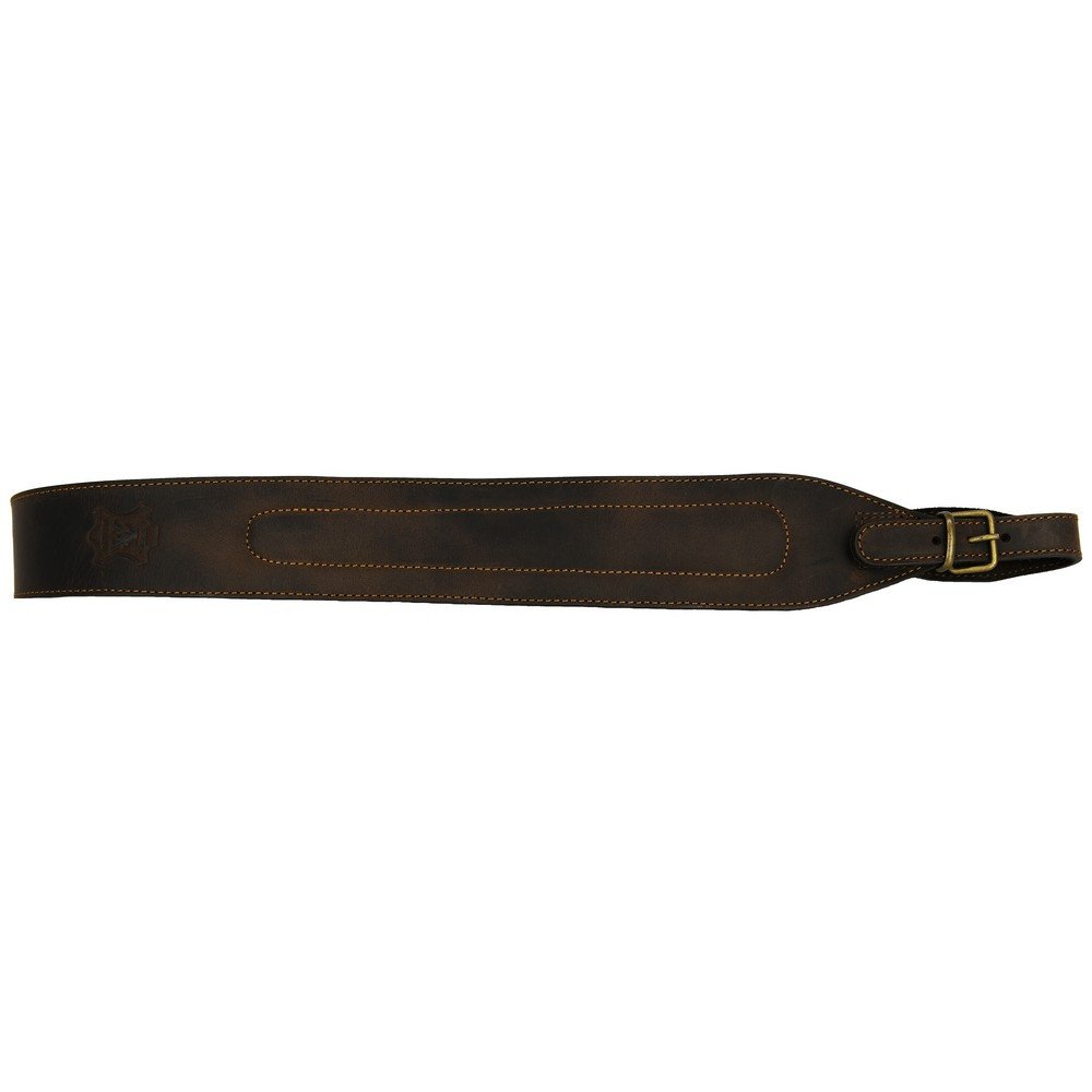 Bretella imbottita per carabina in pelle idrorepellente ingrassata con effetto nabuk, completamente foderata inpelle scamosciata antiscivolo, cinturini con protezione della fibbia e con robuste cuciture.