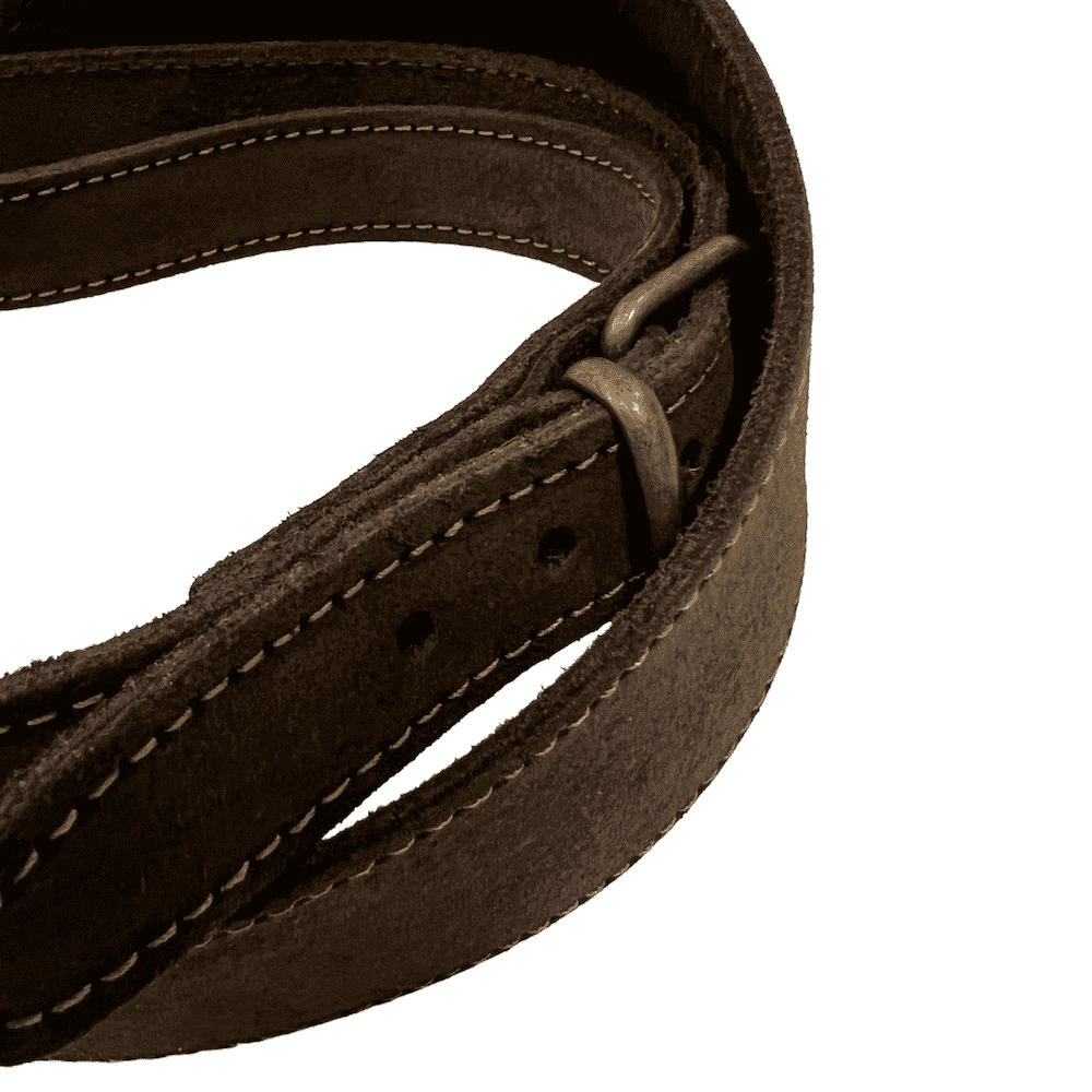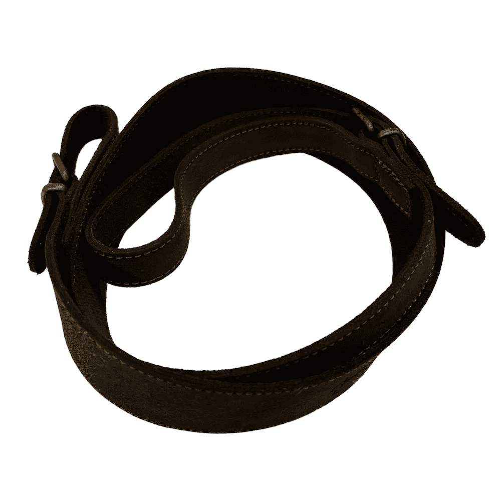Bretella imbottita per carabina in pelle idrorepellente ingrassata con effetto nabuk, completamente foderata inpelle scamosciata antiscivolo, cinturini con protezione della fibbia e con robuste cuciture.