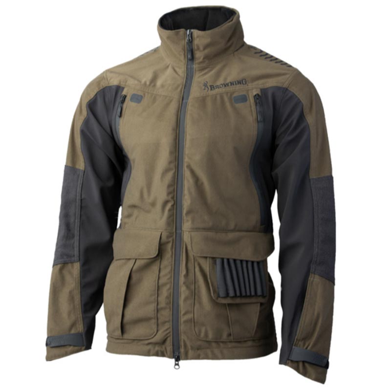 Membrana Pre-VentTM impermeabile, antivento e traspirante / Tasca radio ambidestra / Cappuccio retrattile nel collo e rinforzo sulla spalla / Tasca carniere / Rinforzi Kevlar®.
